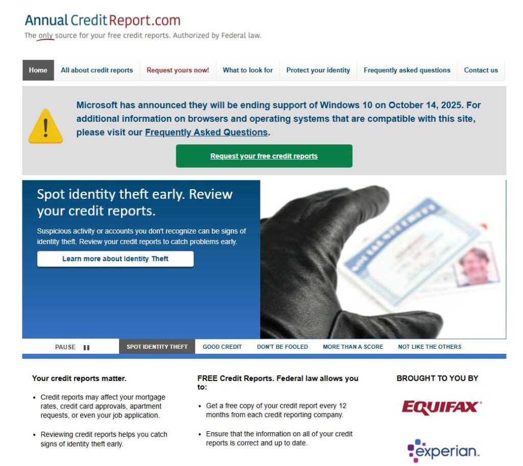 The official source for these free reports is AnnualCreditReport.com, a site authorized by federal law to provide reports from Experian, Equifax, and TransUnion. Avoid paying third-party websites for a report you can get for free.