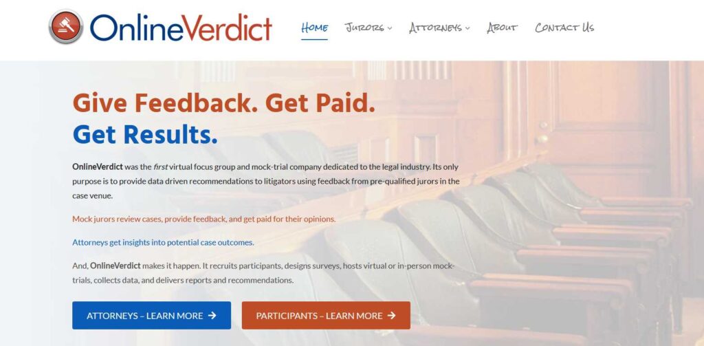 Online Verdict is a platform connecting attorneys with potential jurors to gather feedback on cases before they go to trial. By reviewing case summaries and answering questions, you can help lawyers refine their strategies and potentially earn money in the process. Think of it as a virtual focus group for legal cases, giving you a voice in the justice system from the comfort of your own home.